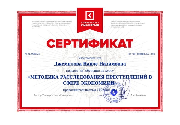 Сертификат обучения методика расследования преступлений в сфере экономики