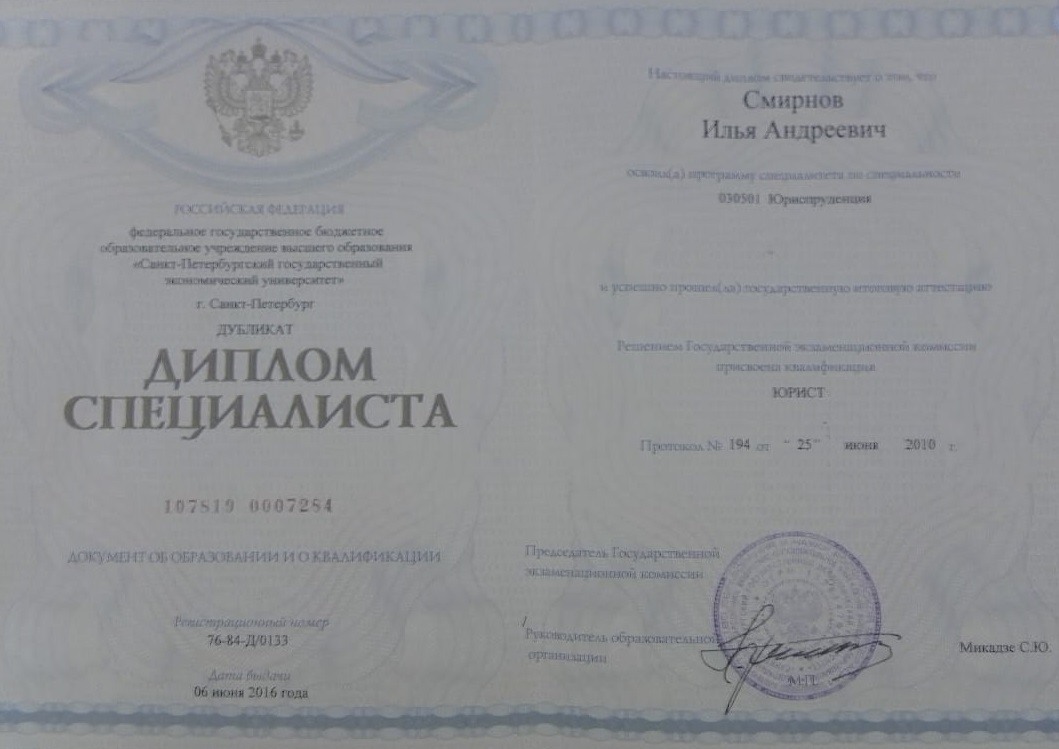 Все отзывыВ 2010 году окончил юридический факультет Санкт-Петербургского государственного университета Экономики и Финансов (ФИНЭК). За годы практики получил широкий опыт положительного решения правовых задач. Трудовую деятельность осуществлял преимущественно в должности ведущего юрисконсульта, как в коммерческих, так и бюджетных организациях.
