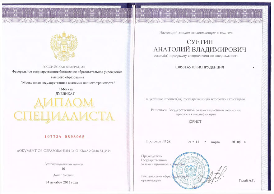 Все отзывы1. высшее юридическое (Московская государственная академия водного транспорта, дата окончания – 2008 год); 2. переподготовка и повышение квалификации по специальности «Оценка деятельности предприятия «бизнеса» (2013 год). Оценщик. 3. переподготовка и повышение квалификации по специальности «Государственные, муниципальные и корпоративные закупки: экспертиза, консультирование и контроль» (2017 год). Эксперт в сфере закупок.