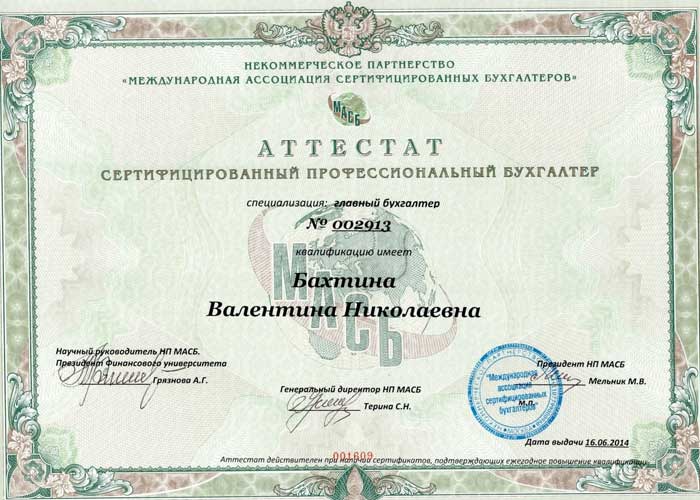 Аттестат сертифицированный профессиональный бухгалтер