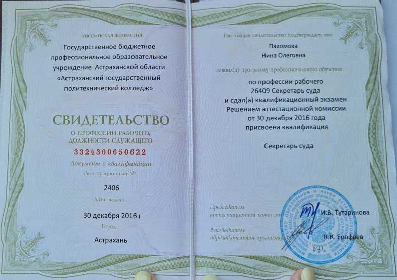 Свидетельство о рабочей профессии