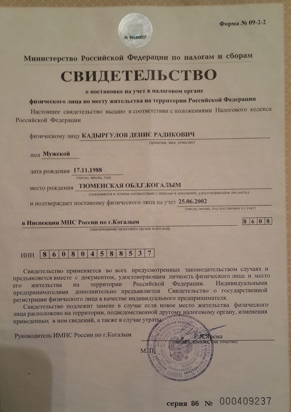 ИНН: 860804588537. ИП Кадыргулов Денис Радикович, зарегистрированный по законодательству Российской Федерации по адресу: г. Уфа, ул. Проспект Октября 132/2 кв. 54
